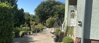 Az 1050 m²-es telek kertje intim, rendezett, sok zöld növénnyel. A Balaton partja csupán 2 km-re található, így a tó közelsége egy további nagy előny. Üzletek, iskolák és hivatalok gyalogosan is könnyen megközelíthetők.