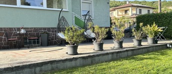 The house offers a total living space of approximately 160 m² over two levels, featuring 5 rooms, a living room, a kitchen-dining area, 2 bathrooms, and 2 toilets, making it both practical and comfortable. The renovated home is equipped with plastic windows, insulation, and gas-circulation heating, with air conditioning on both residential levels to keep things cool during the summer months.