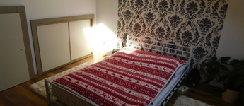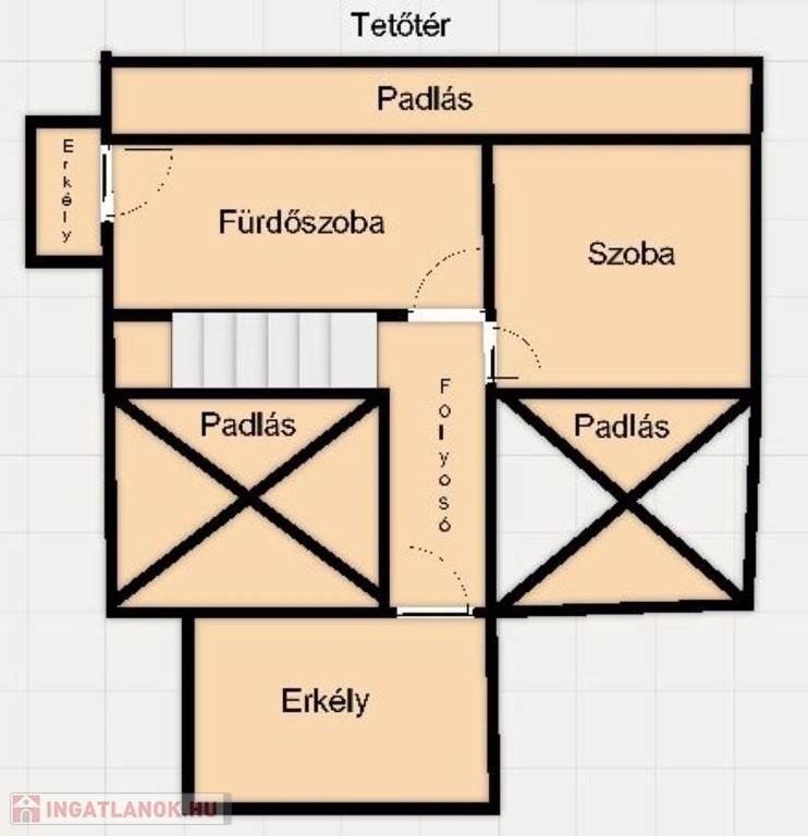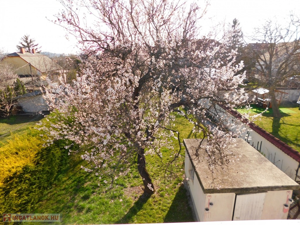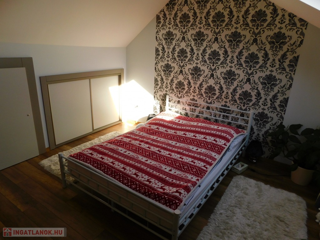 A tetőtérbe az előszobából egy felújított, elegáns mahagóni falépcső vezet. Itt található egy fürdőszoba, melynek erkélyéről gyönyörű kilátás nyílik a Tamás-hegyre – egy reggeli kávé vagy esti elcsendesedés tökéletes helyszíne. A fürdő programozható elektromos padlófűtéssel felszerelt, a meleg vizet pedig külön, 80 literes villanybojler biztosítja. A mellette kialakított hálószoba inverteres hűtő-fűtő klímával gondoskodik a komfortos pihenésről minden évszakban.