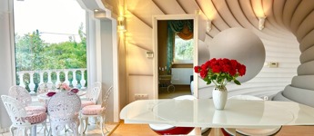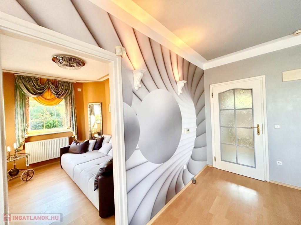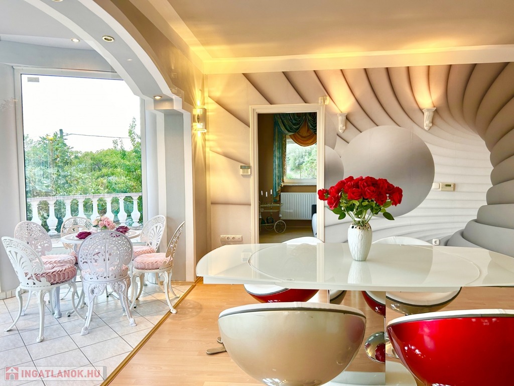 Az ingatlan lakótere igazán egyedi megjelenéssel rendelkezik, amely egy impozáns életvitelt biztosít tulajdonosa számára.