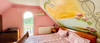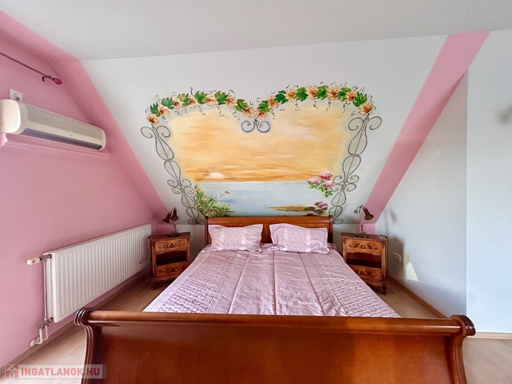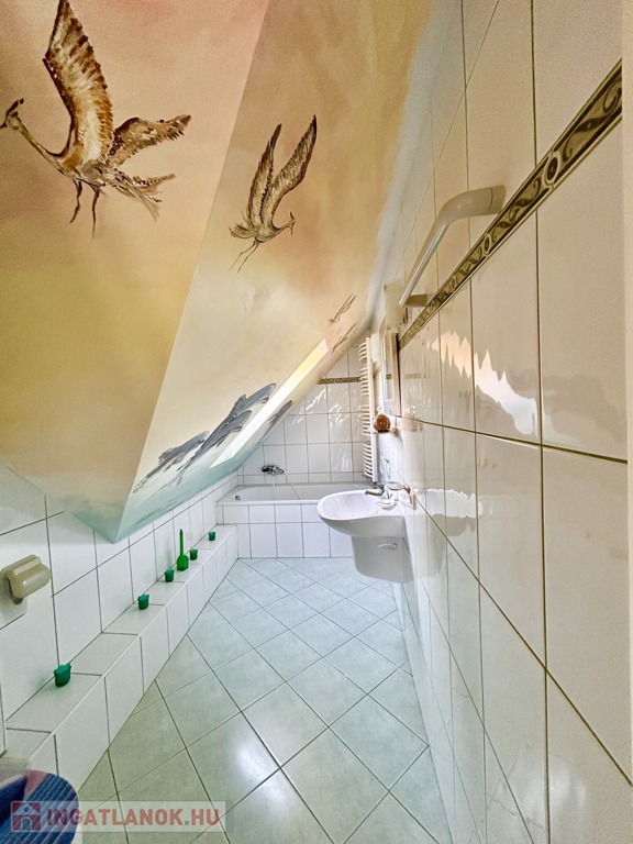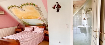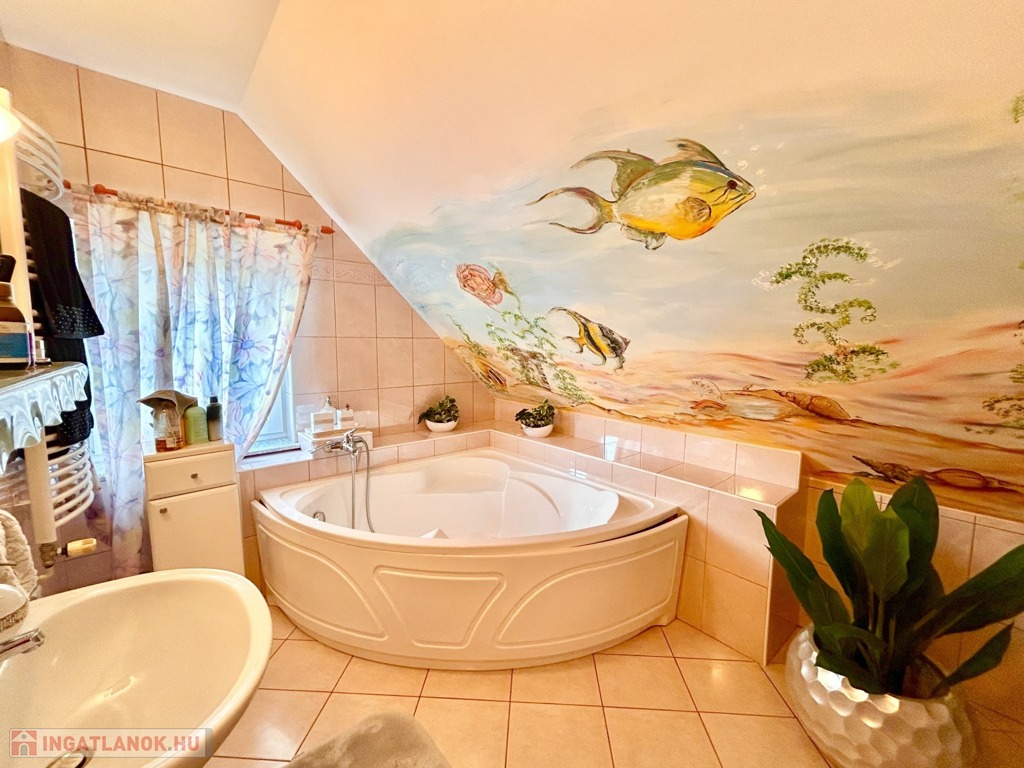 A belső kialakítás is minden igényt kielégítő elgondolások alapján lett kivitelezve, amelybe bele foglaltatik az is, hogy a tetőtéri szobákhoz saját fürdőszoba és illemhelyiség tartozik.