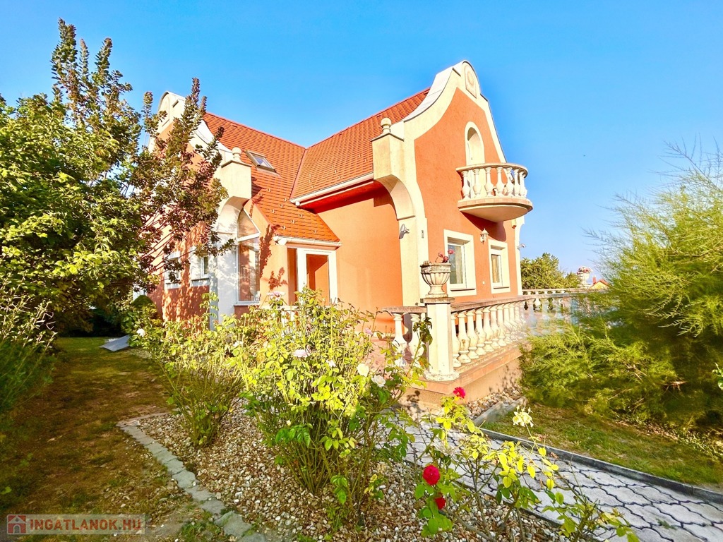 A telek teljesen parkosított, folyamatosan gondozott, körbe lekerített.
