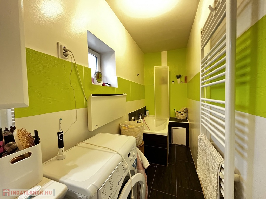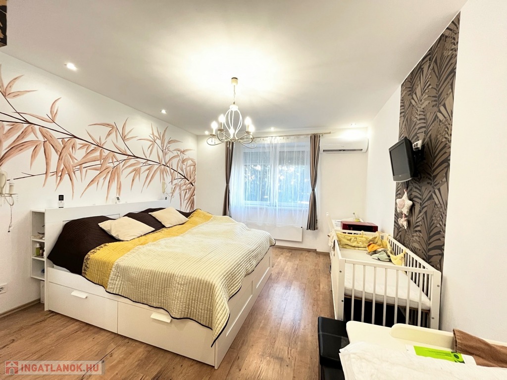 Belső hasznos területe 160 m2, mely 2 szobát, előszobát, nappalit, konyha-étkezőt, fürdőszobát, valamint gardróbot foglal magába, valamint egy külön bejáratú apartmanrészt, amely a ház folytatásaként további egy szobával, fürdőszobával, mosókonyhával és tárolóval rendelkezik. Tökéletesen elszeparált lakrész, amely vendégek fogadására is alkalmas.