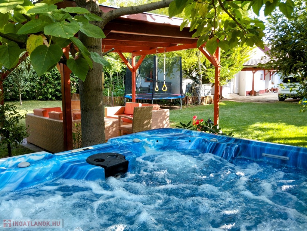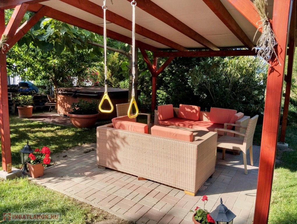 Gyönyörűen karbantartott és kellemesen kezelhető 759 m2-es telkén fedett kocsibeálló, kerti kiülő és masszázs medence koronázza meg a teljes képet, amolyan hab a tortán a teljeskörű kikapcsolódáshoz. És ha ez önmagában nem lenne elég, a parttól mindössze 800 m-re , tehát gyalog is 10 perces sétával egy kellemeset merülhet a Balatonban. Az autópálya felhajtótól 10 km-re fekszik, Budapesttől pedig 100 km-re.
