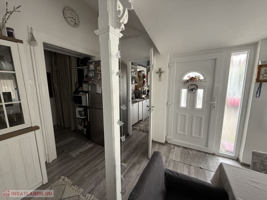 A nagyobb 90 m2-es házban három hálószoba, külön étkező, konyha és gardrób kapott helyet. Két fürdőszoba szolgálja a lakók kényelmét – az egyik zuhanyzós, a másik kádas –mindkettő felújított. A szobákban laminált padló, a többi helyiségben járólap található.