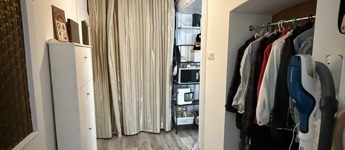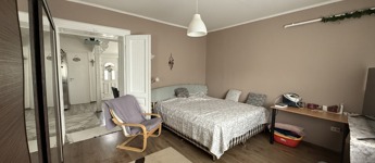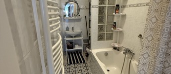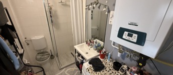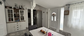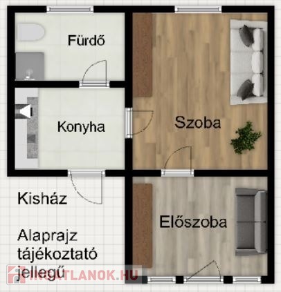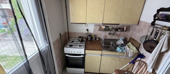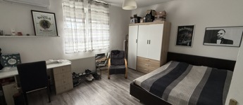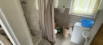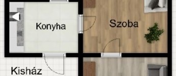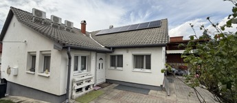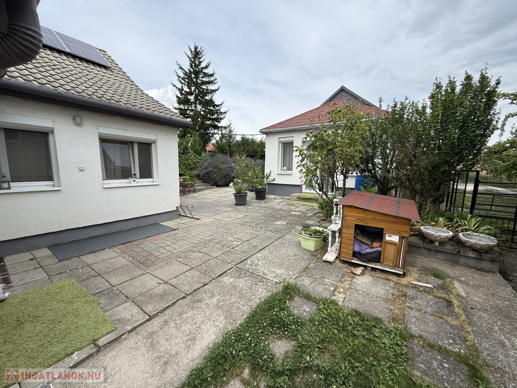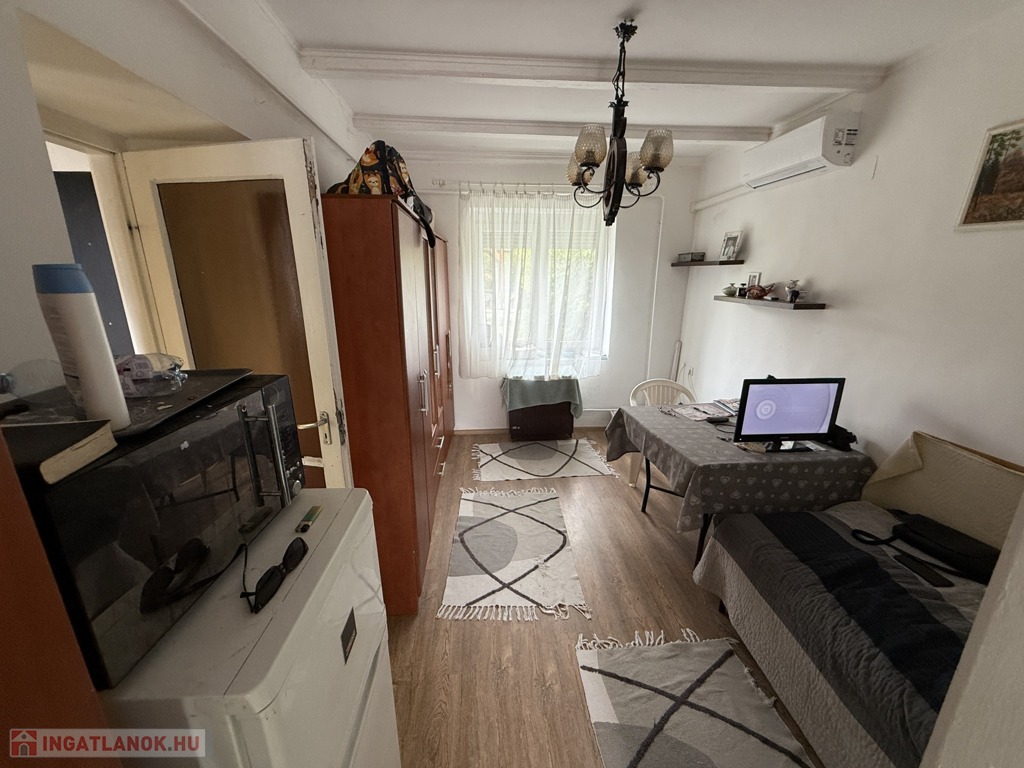 A kisebb, 40 m²-es ház külön bejárattal rendelkezik, saját fürdőszobával, konyhával és egy szobával. Fűtése parapetes gázkazánról történik, klíma és villanybojler szintén rendelkezésre áll.