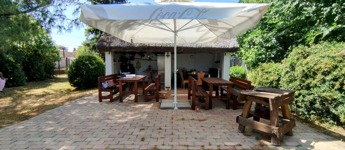 A kert élővilága túlmutat a díszítésen, mely gondosan elrejti lakóját a kíváncsi szemek elől. Válogatott növényvilággal bíró zöld oázis, amihez tartozik még egy 17 m2-es nyári konyha, ahova a víz és villany is bevezetésre került, valamint egy 8 m2-es szerszámostároló faház. A növényzet vízellátásáról kerti csap gondoskodik. Kertje nem csak szép, hanem élettel teli, mely minden évszakban más arcát mutatja.