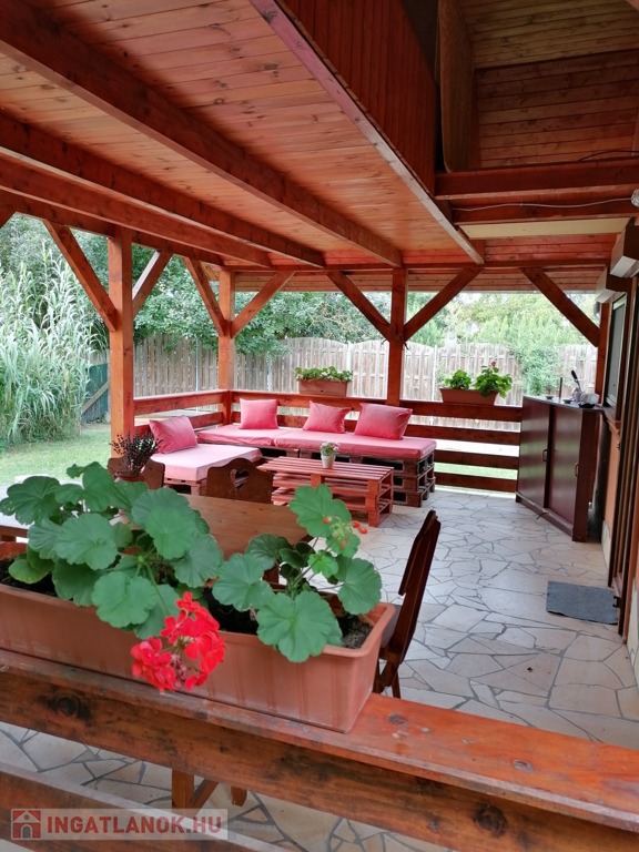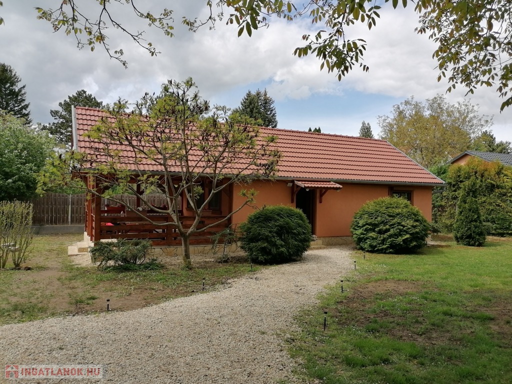 Az újszerű, 2008-ban könnyűszerkezetes technológiával épült ház gerenda vázas, D-i tájolású, belső hasznos területe 60 m2, mely két hálószobát, amerikai konyhás nappalit, fürdőszobát, valamint 24 m2-es fedett teraszt foglal magába. A szobák méreteiről, a belső elosztásról a mellékelt virtuális túra ikonra kattintva kaphat teljes képet.