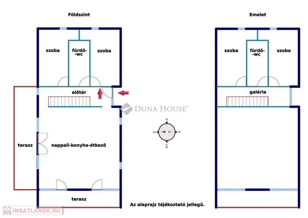 A kétszintes ingatlan nettó 107 négyzetméter alapterületű. Elosztását tekintve átgondolt; világos terek jellemzik: a tágas, galériás amerikai konyha - nappali - étkezővel biztosítja a társasági élet központját, valamint a mindkét szinten megtalálható 2-2 hálószoba és 1-1 fürdőszoba wc-vel lehetővé teszik a praktikus és kényelmes életvitelt.