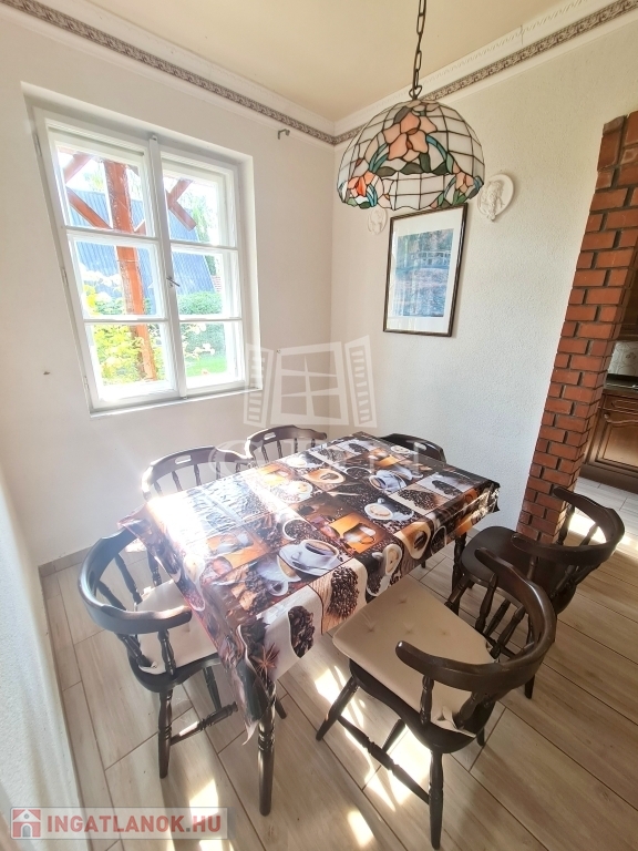 A ingatlan egy 748 m2-es gondozott, körbekerített, sík telken található. Összesen 220 m2-en ad helyet a két lakásnak, melyben a gázon kívül (gáz az udvarban) az összes közmű bevezetésre került. Az egyik lakás fűtése fatüzelésű kandallóval megoldott, illetve a nappaliban található egy villanykandalló is.