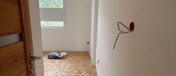 - Víz és villany kiállások a falszerkezetbe behúzva, szerelvények és kapcsolók nélkül.