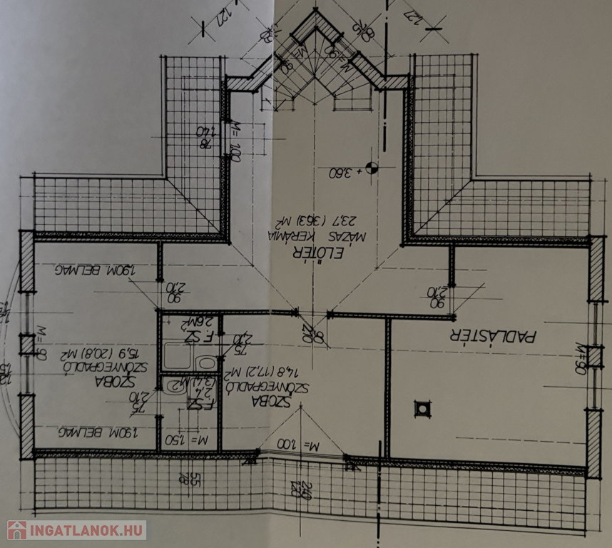 o Emelet: 109 m² (nettó 83 m², a 190 cm-nél magasabb), valamint egy 8 m²-es erkély, ahonnan gyönyörű kilátás nyílik az udvarra.