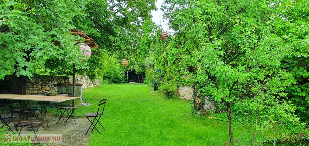 A 3100 m²-es telek maga a paradicsom: gondozott kert halastóval, lugasokkal, gyümölcsösökkel és díszfákkal, bővizű kúttal. Három masszív, 80 cm-es kőfalazatú épület várja az új tulajdonost: