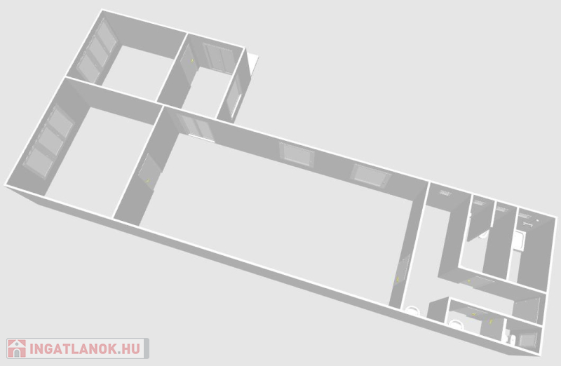 Az ingatlan közepén egy több, mint 40 m2-es helyiség található, amely igény szerint használható nappali-étkező-konyhának, vagy felosztható kisebb helyiségekre.