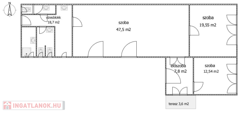 A házban az eredeti( üzleti) funkciónak megfelelően nagy vizesblokk került kialakításra.