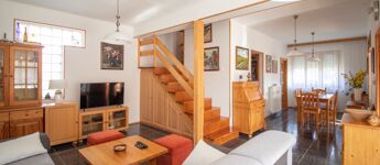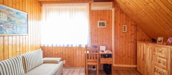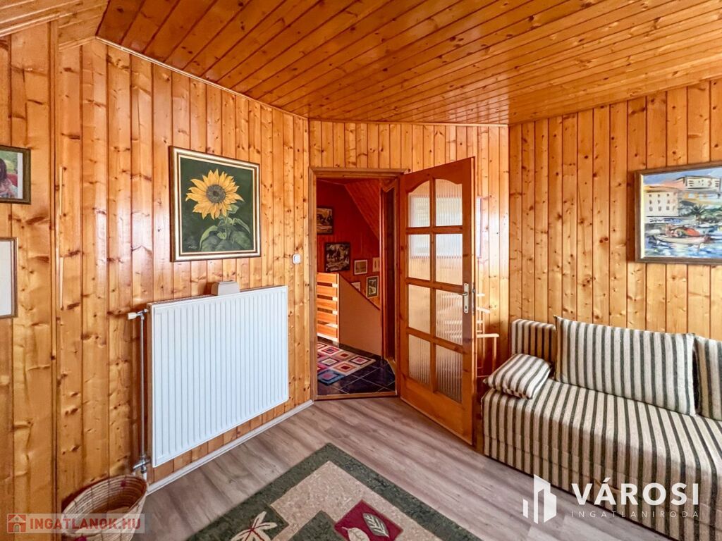 Az ingatlan belső állapota kiváló, otthonos hangulatú, kifejezetten világos, a sok faburkolat meleg, barátságos atmoszférát teremt.