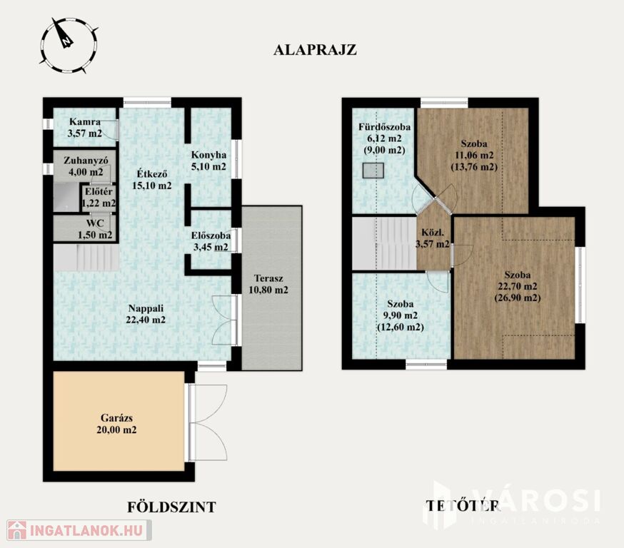 2 fürdőszoba (zuhanyzós és kádas)
