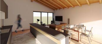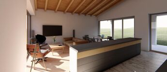 Felső szint: amerikai konyhás étkezős nappali, három hálószoba, egy fürdő, egy háztartási helyiség, valamint egy külön mellékhelység. A nappaliból egy 32 m²-es teraszra léphetünk ki.