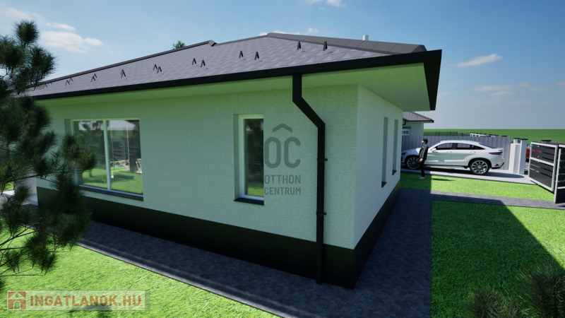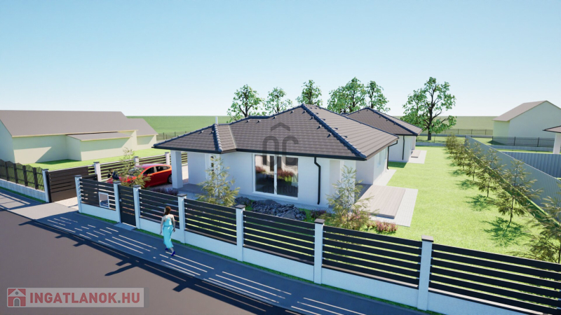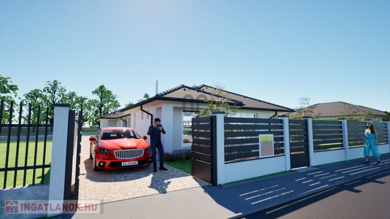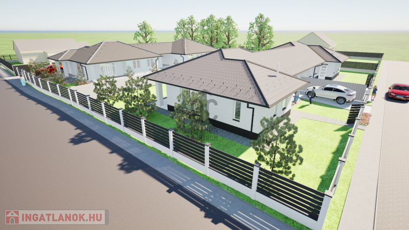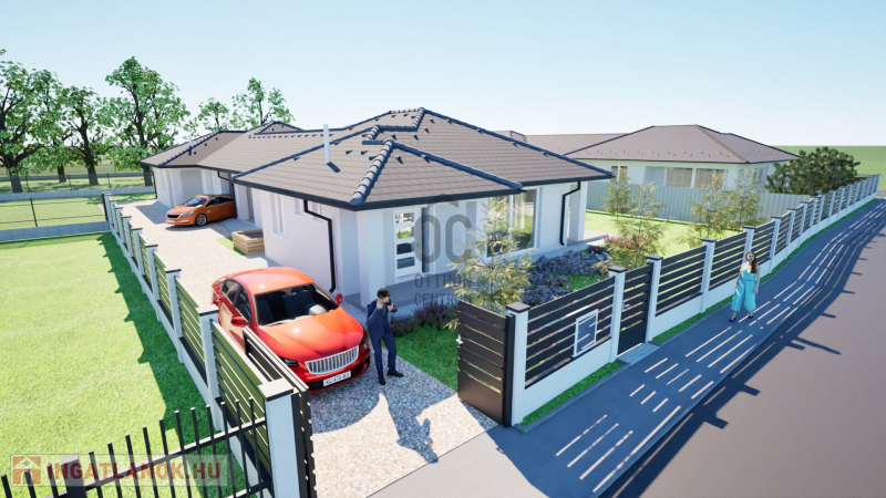 Debrecentől 10 perc autóútra, Bocskaikert új építésű házas övezetében, aszfaltos, összközműves utcában 2025. III. negyedévi átadással eladó egy földszintes, bruttó 131 m2-es, nappali-amerikai konyha + 4 külön nyíló szobás, új építésű ikerház, 1006 m2 saját telken, ahol csak a garázsok érnek össze és nincs átjárás az ingatlan előtt, ezért teljesen intim.