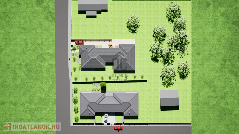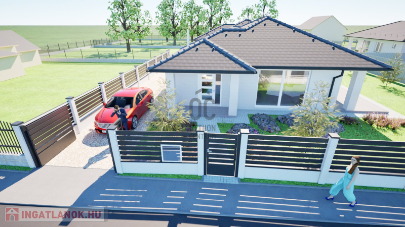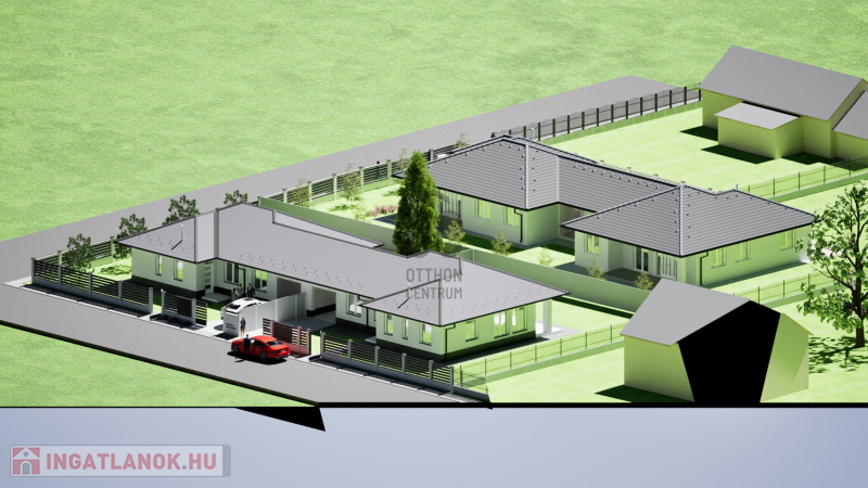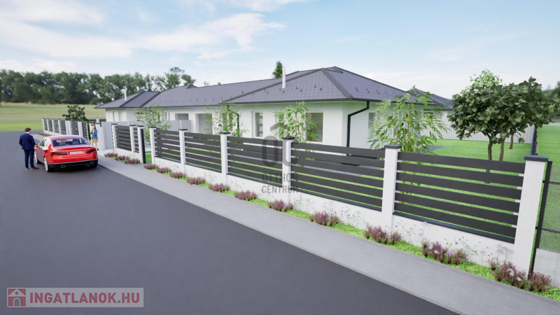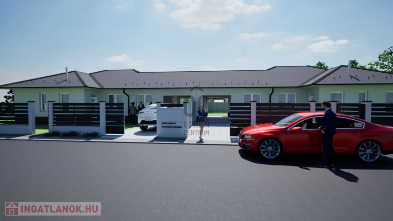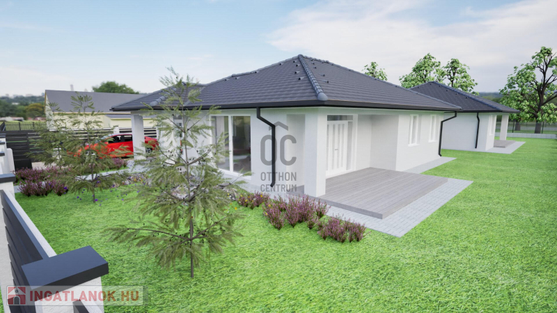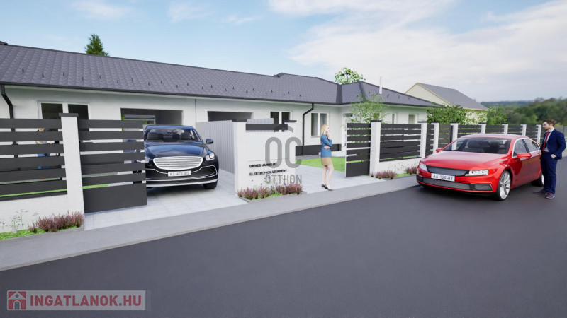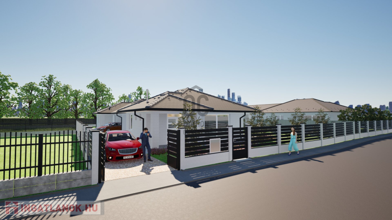 földszintes ikerház, intim, önálló bejáró, nagy kert, 4 hálószoba, őszi átadással