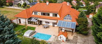 A Bakony és a Vértes között, Bodajk nyugodt, zöldövezeti részén kínálunk megvételre egy 1995-ben épült, tégla szerkezetű, 329 m²-es családi házat.