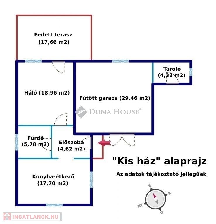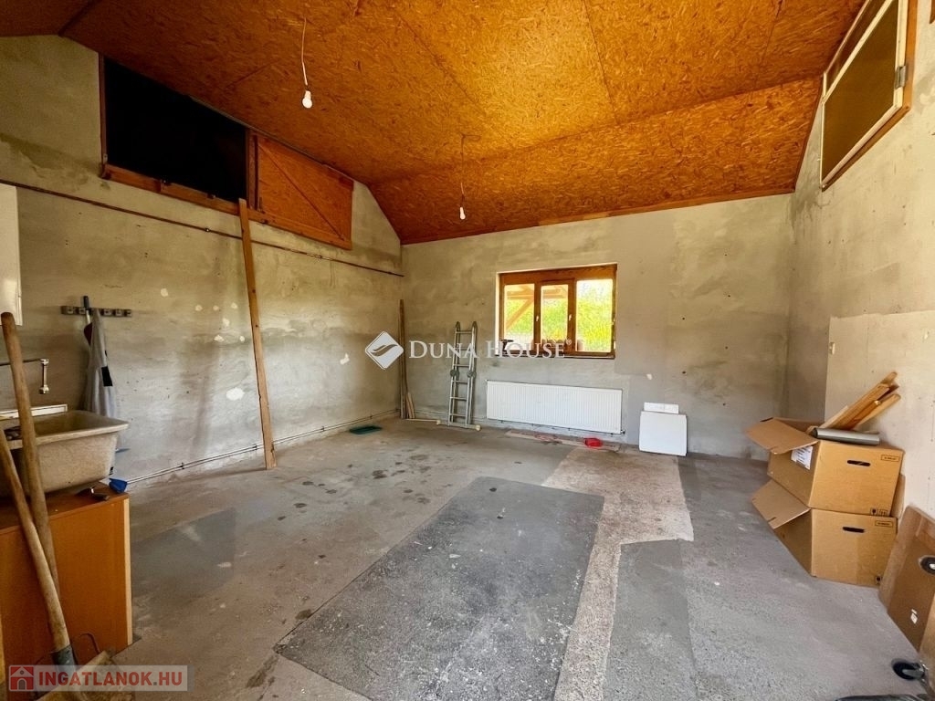 A zárt, bensőséges udvarról nyílik a kis ház is, melyben 1 szobát, konyha-ebédlőt, fürdőt, egy nappalivá könnyen átalakítható tágas, fűtött garázst és hátsó fedett teraszt találunk. Ez a ház nagyon jó lehet fiatal párok, vagy felnőttkorú gyerekek számára, de akár vendégházként is.