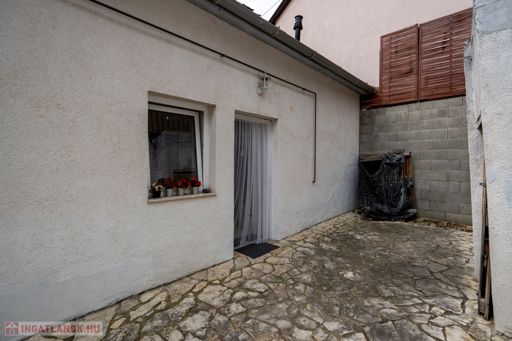 Utcai parkolás a ház előtt, illetve egy kisebb garázs van a telken, ez most tárolóként funkcionál. A keskeny bejárat miatt csak kisebb autóval lehet parkolni a telken belül.