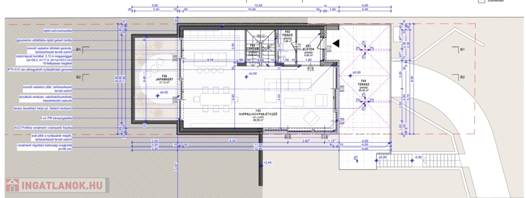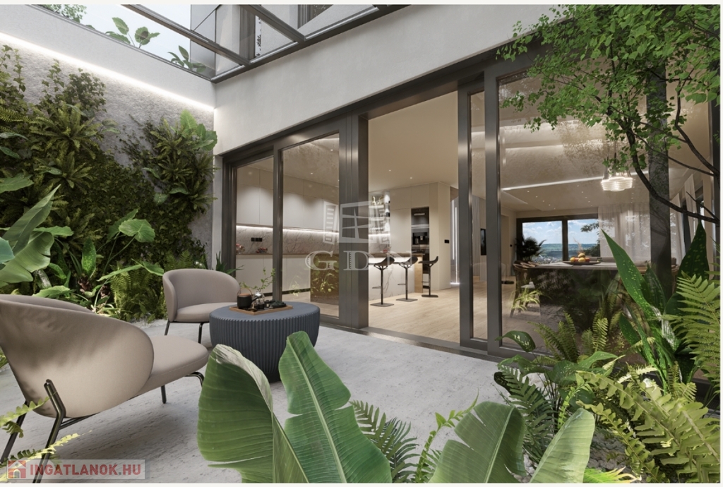 Wellness & Relax: 46 m²-es panorámás terasz és egy egyedülálló, 21 m²-es belső japánkert, amely a ház szívét alkotja.