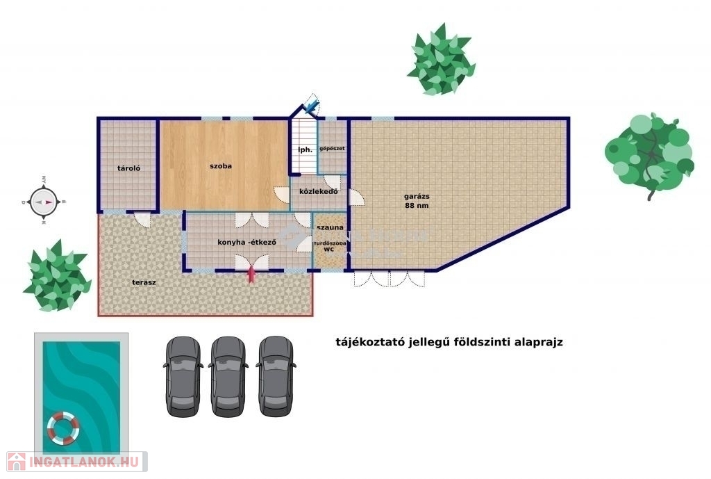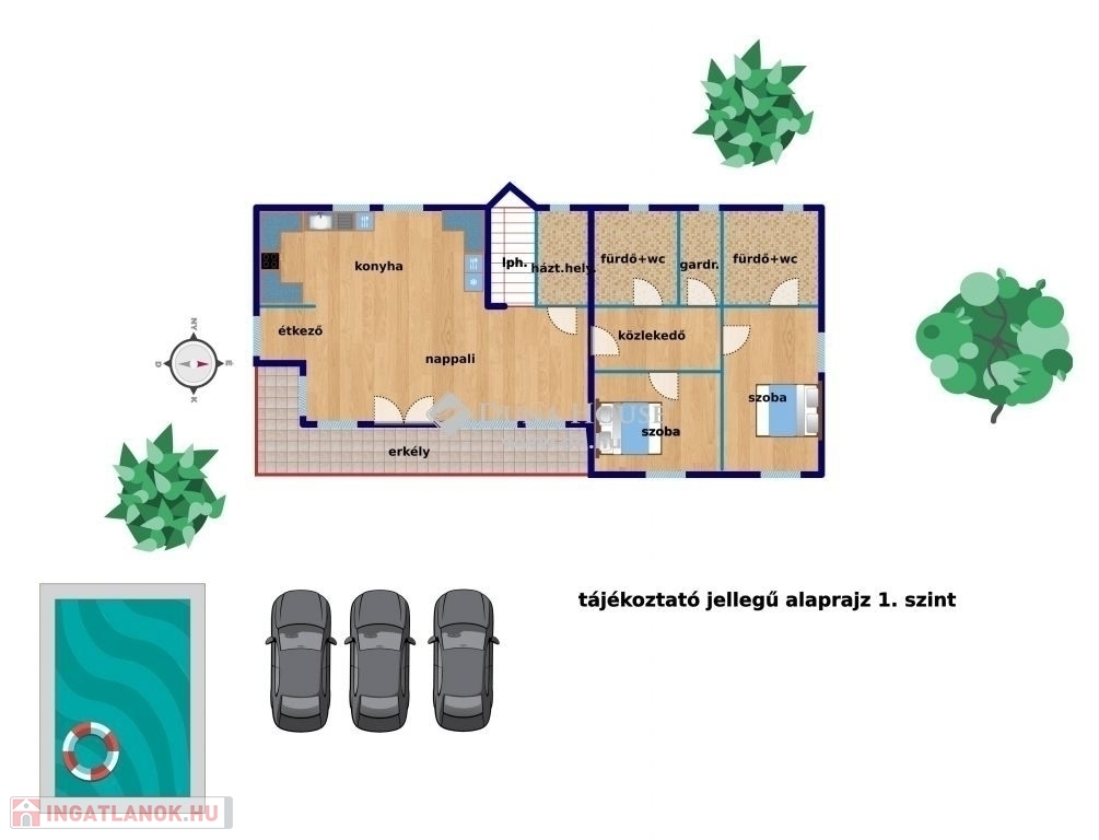 Ezen a szinten van a minimum 3 autónak elegendő garázs is.