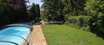 Budaligeten nappali + 5 szobás , mediterrán stílusú , medencés családi ház eladó .A ház nagyon szép állapotban van, minőség, örök elegancia jellemzi külső és belső megjelenésében is! A földszinti részen közvetlen kertkapcsolatos tágas, kandallós nappali került kialakításra, mellette a konyha, kamrával, háztartási helyiség-gardrob, fürdő. Az emeleti szinten a szülői hálóhoz közvetlenül kapcsolódik a tágas fürdőszoba, továbbá itt vannak a gyermekszobák, vendégszoba, dolgozó és külön fürdőszoba. Kedvező rezsi, harmonikus otthon!Riasztóberendezések, kamerarendszer is kiépítésre került. Fűtési renszere távvezérlési lehetőséggel ellátott. A garázs mellett 2 autó beállására is van lehetőség, továbbá a ház előtt is kiépített parkoló fogadja a látogatókat.Az ingatlan kertjének elrendezését úgy alakították ki, , hogy az akár a nappali kényelmét nyújtsa az egész család számára,de mindezt a szabadban – megőrizve a szabadtér által kínált páratlan lehetőségeket. Fedett, fűtött kerti medence, grillező pavilon használata kikapcsolódást nyújt a család, baráti társaságok... részére. Elhelyezkedése kiváló, csendes madárcsicsergős környezetben van, mégis a tömegközlekedés néhány perces gyalogostávolságra található. Oktatási intézmények, nemzetközi iskolák / francia, amerikai / , bevásárlási lehetőségek a közelben.Ezt a házat látni kell, ebbe minden kedves látogató csak beleszeretni tud! Várom szíves hívásukat!