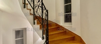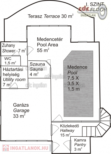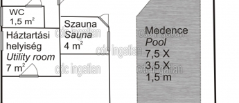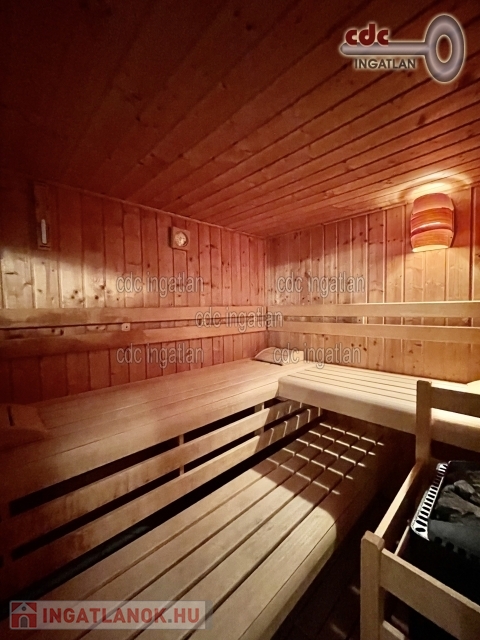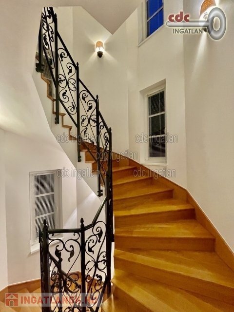 A 3 szintes épületben 5 külön nyíló szoba, 4 fürdőszoba, szauna, úszómedence és elektromos ajtóval nyíló kétállásos garázs található.