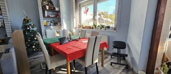 A ház 1990-ben épült 3 szintes. Földszinten van az amerika konyhás étkező- nappali télikerttel, egy kisszoba és egy fürdőszoba. Az emeleten 3 hálószoba, amiből kettő nagyobb, egy kisebb 1 fürdőszoba és, egy kisebb gardrób van. A legalsó félszuterénben egy kislakás, mosókonyha, Kertben egy fedett kocsibeálló van.