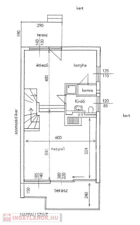 - étkező terasz- és kertkapcsolattal,