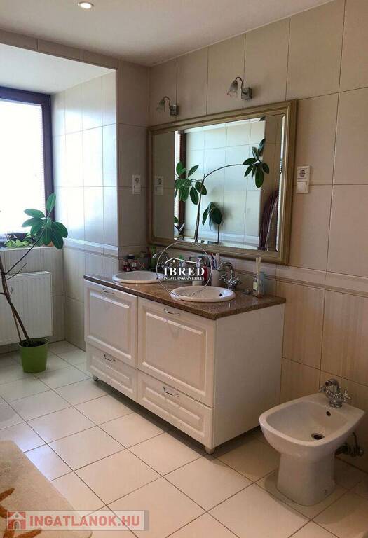 A szerkezetileg kitűnően megépített ingatlan nappali szintjéhez hatalmas teraszok kapcsolódnak, a ~80 nm-es nappali-konyha-étkező együtteséből közvetlenül is, ill. a hozzá kapcsolódó ~50 nm-es teraszról is élvezhetjük a zavartalan panorámát. A hátsó, ~100 nm-es terasz a gyümölcsfákkal beültetett, gyepesített, hangulatos kertben folytatódik. Ezen a szinten találunk még két kényelmes hálószobát, zuhanyzóval felszerelt fürdőszobát és vendégmosdót is. A kényelmes, - impozáns kovácsoltvas korláttal ellátott, az ablakoknak köszönhetően világos - belső lépcsőházban juthatunk fel a három hálószoba szintjére, itt a minden igényt kielégítő fürdőszoba mellett az intim fekvésű, panorámás terasszal bíró szülői hálószobából külön járható gardrób is a lakók kényelmét szolgálja. A rendkívül tágas két lakószintet kiegészíti a beépített, teljes értékű, klimatizált manzárd szoba, ami tökéletes lehetőség lehet az elvonulásra, kikapcsolódásra.
