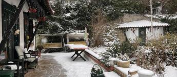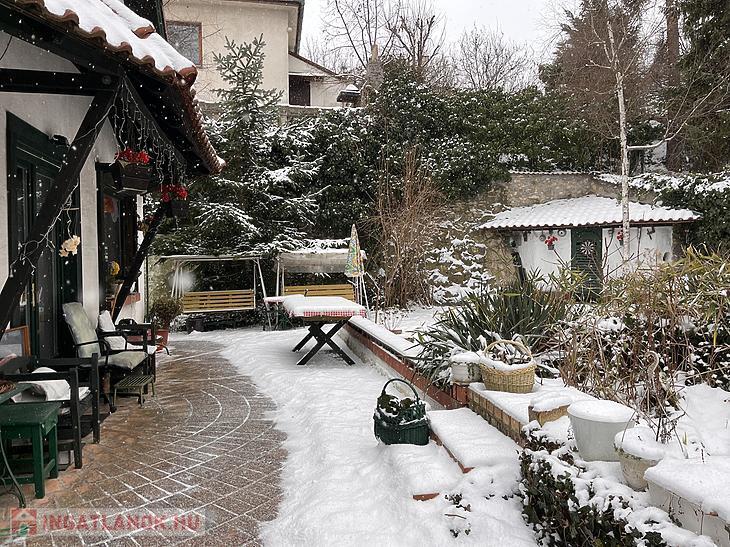 A kertben található egy 12 négyzetméteres téli kert és halastó is!