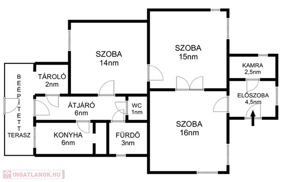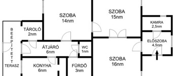 - Egyszintes, 3 szobás elrendezés