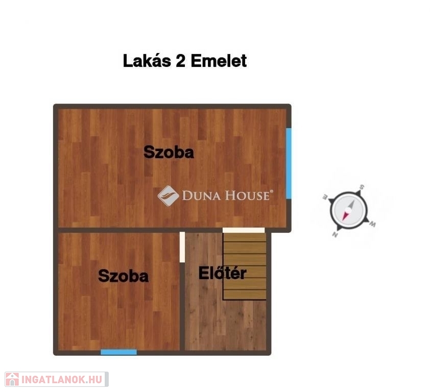 - Mindkét lakás kétszintes, beépített tetőtérrel