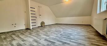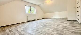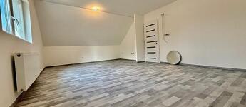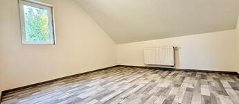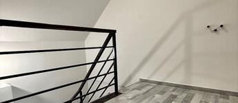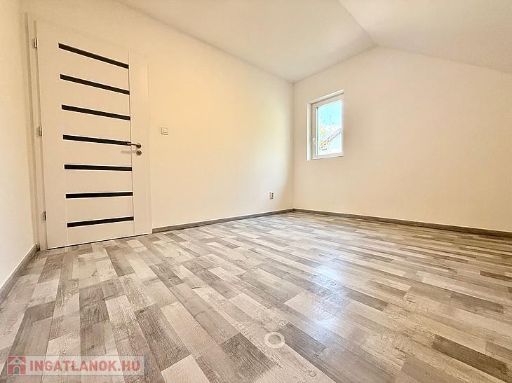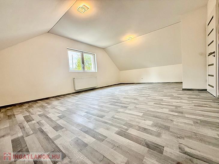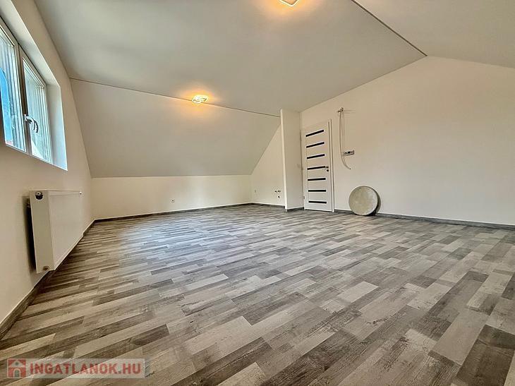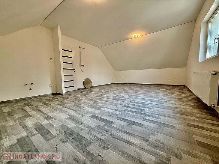 Az emeleten amerikaikonyhás nappali, 2 szoba, fürdő és egy gardrób istalálható.
