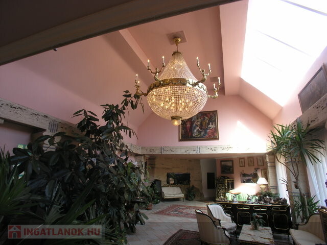 * földszint: előszoba, nagy dolgozó szoba, konyha, ebédlő, nappali, terasz, 2 szoba, kazánház-mosókonyha, 2 WC, uszoda, fitneszterem szaunával, négyállású garázs, kamra, csónakház.