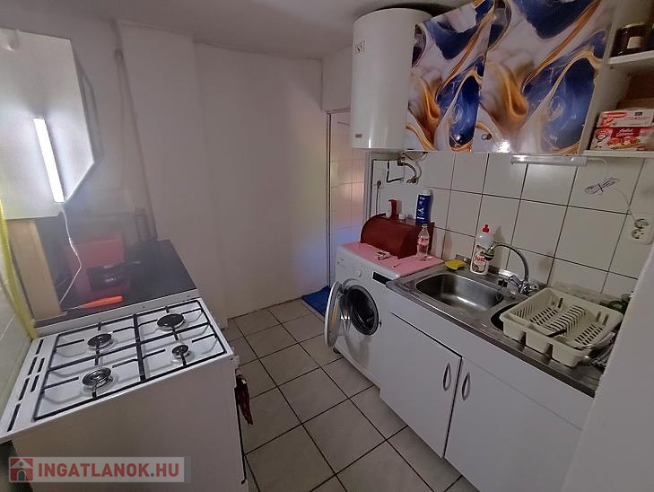 A hátsó, különálló házrész külső homlokzata szigetelt, jó állapotú, 30 nm-es. Itt egy szoba, konyha és fürdőszoba került kialakításra. Kiváló lehetőség bérbeadás szempontjából. A villanyhálózat korszerűsítve lett. Több ponton záródó biztonsági bejárati ajtót, illetve műanyag és fa keretes, thermoo üveges nyílászárókat építettek be. A szoba és az előszoba szalagparkettával burkolt, a többi helyiségben járólapot helyeztek le. A fűtésről gázkonvektor, a melegvíz ellátásról villanybojler gondoskodik. Egyedi mérős fűtésének köszönhetően az elszámolás fogyasztás alapján történik mindkét házrésznél, külön-külön.