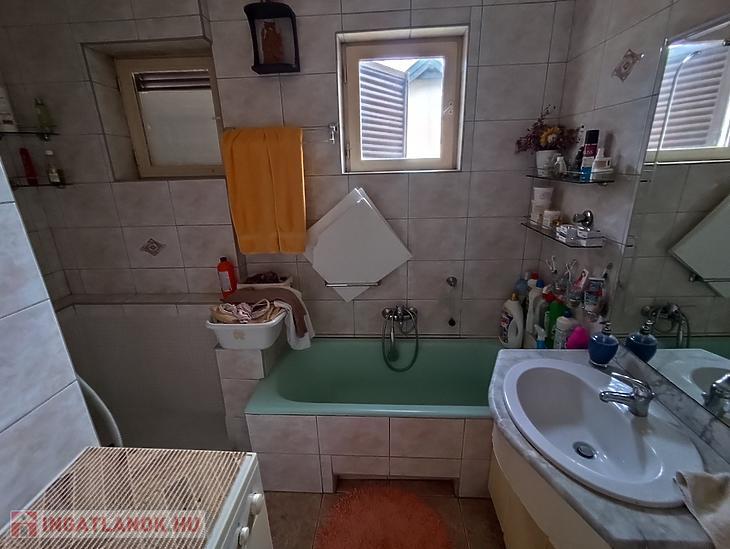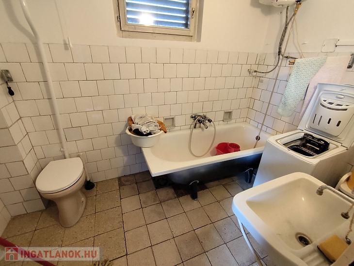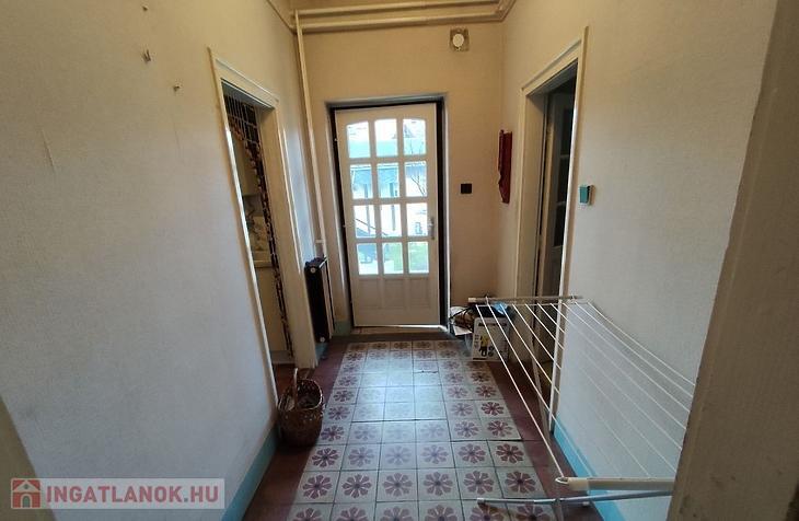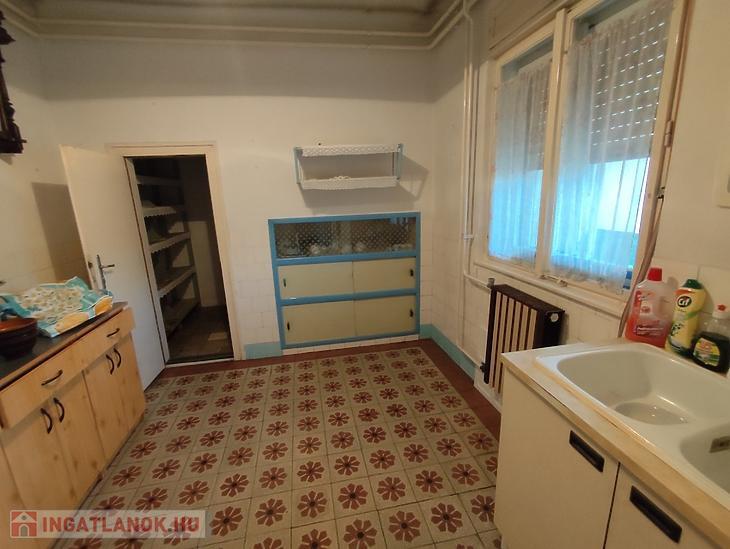 A teljes ingatlan egy különnyíló földszinti lakrészből és egy szintén különnyíló belső kétszintes emeleti lakrészből épül fel. A fölszinti lakrész 64 nm-es, 2 szoba, felújítandó állapotú, kb. 20 nm-es teraszkapcsolat tartozik hozzá. Itt eredeti vezetékek és redőnnyel felszerelt fa keretes nyílászárók találhatók. A szobák fa parkettával, a többi helyiség járólappal burkolt. A fűtésről kombi cirkókazán gondoskodik.