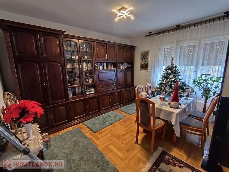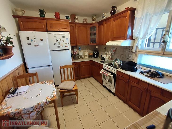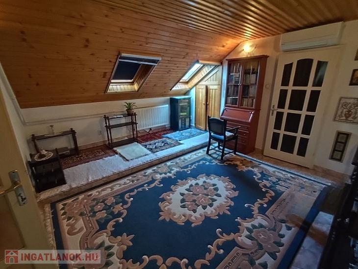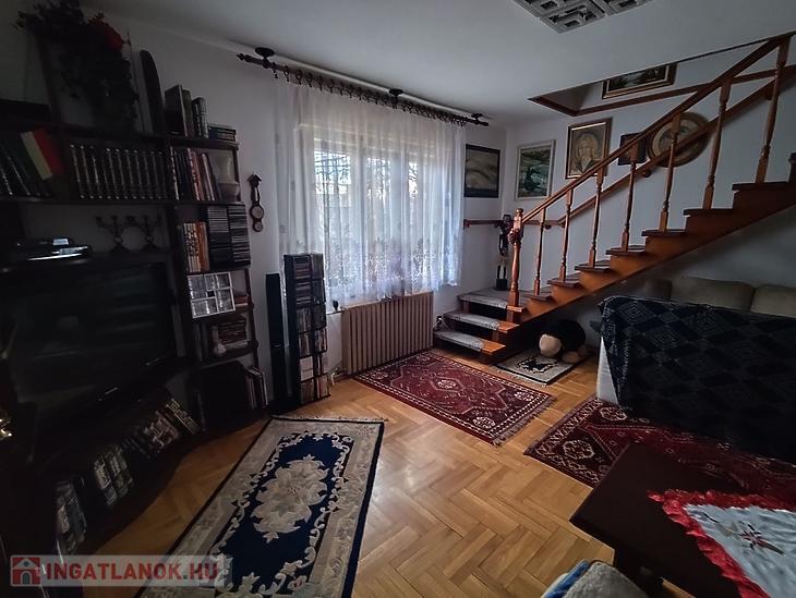 Az 1. emeleten található belső kétszintes, teraszkapcsolatos ingatlan br.: 130 nm-es, n.: 110 nm-es, 3 szoba, beköltözhető állapotú, duplakomfortos. Az 1. emeleten fa keretes ablakok, a tetőtérben velux ablakok található. A nappali fa parkettával, a szobák padlószőnyeggel, a többi helyiség járólappal burkolt. A fűtésről kombi cirkókazán gondoskodik, a tetőtérben már újabb lapradiátorok szereltek fel. A nagyobb komfortérzet kialakítása érdekében, a tetőtérben egy hűtő-fűtő inverteres légkondicionáló is beépítésre került.