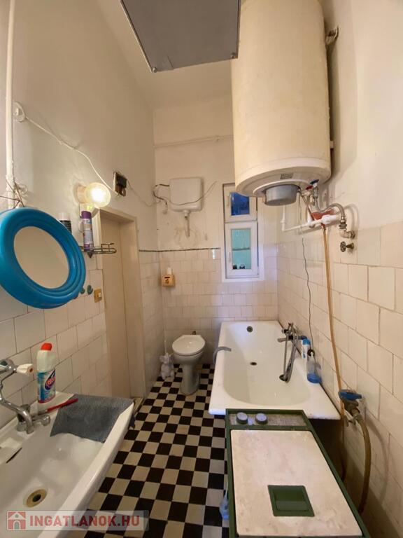 A fürdőszoba ablakos, kádas, WC-vel felszerelt.