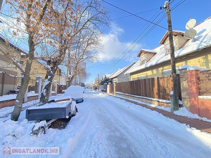 A ház egy 140 nm-es telken belül helyezkedik el, előkertes.