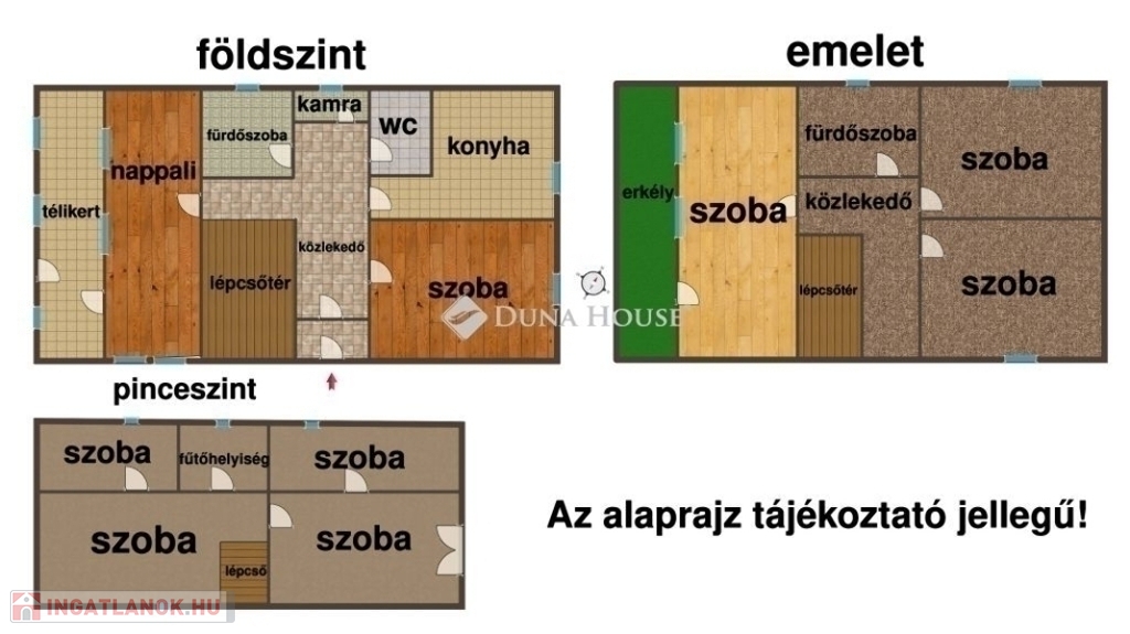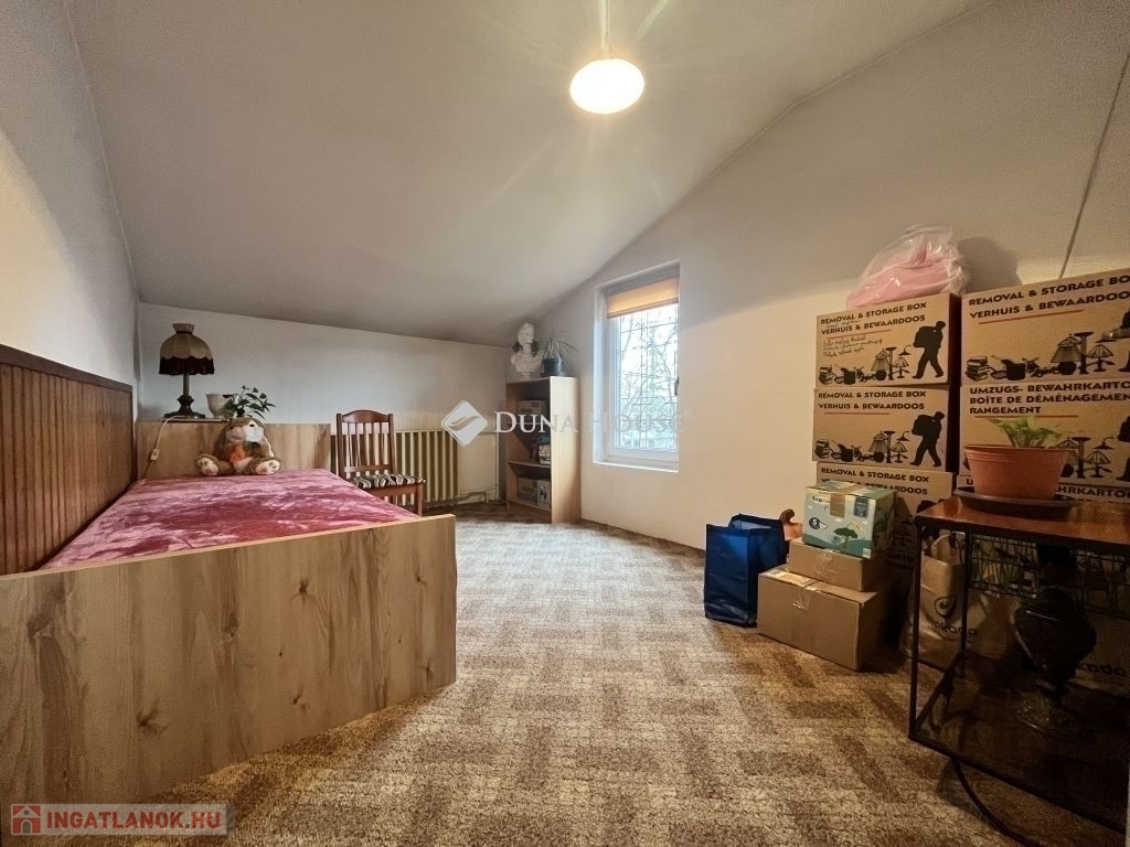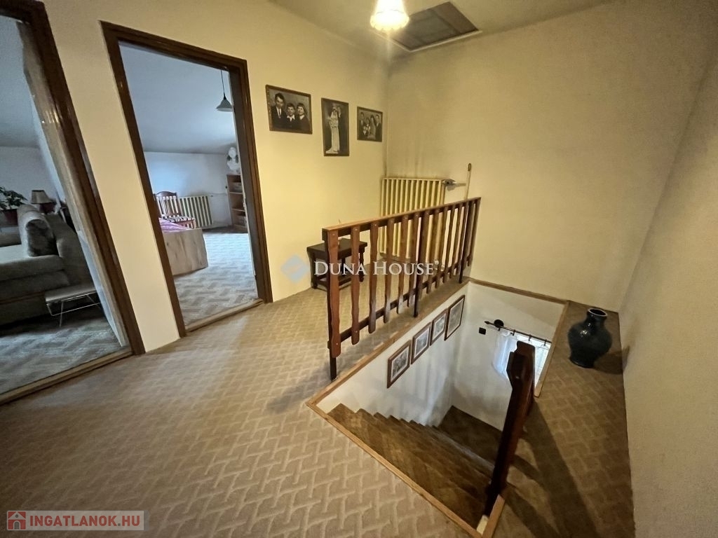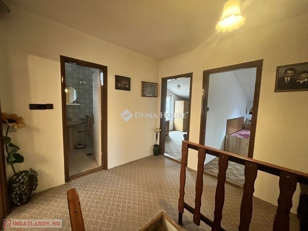 Az emeleti szinten további három külön nyíló szoba található, valamint egy kádas fürdőszoba. Az egyik helyiségből egy kényelmes méretű erkély is elérhető, amely tovább növeli az ingatlan komfortját.