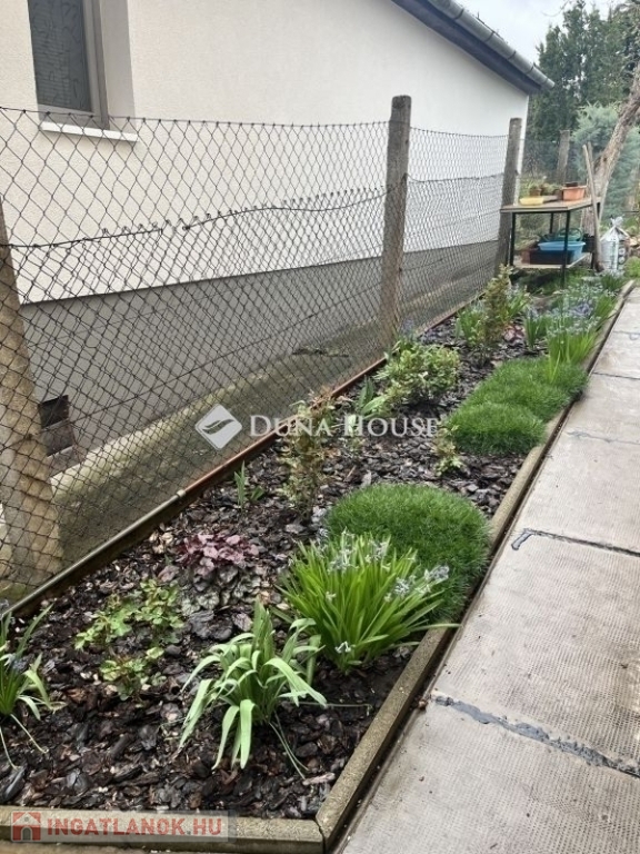 A 453 nm-es telek ideális méretű: könnyen fenntartható, mégis bőséges lehetőséget kínál kertészkedésre és pihenésre. A gondosan ápolt kertben gyümölcsfák, szőlő, virágok és dísznövények kaptak helyet. Az öntözés fúrt kútról megoldott.