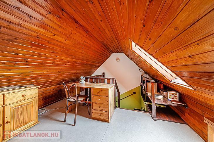 A tetőtér beépítésnek köszönhetően van egy plusz szobánk, ami szabadidős tevékenységre és lakószobának egyaránt igénybe vehető.
