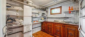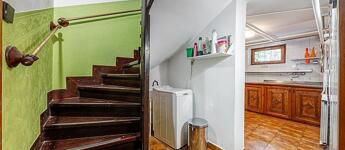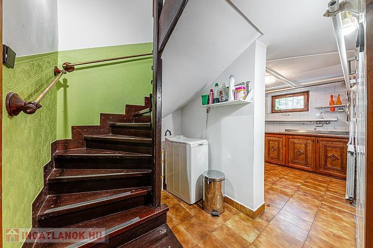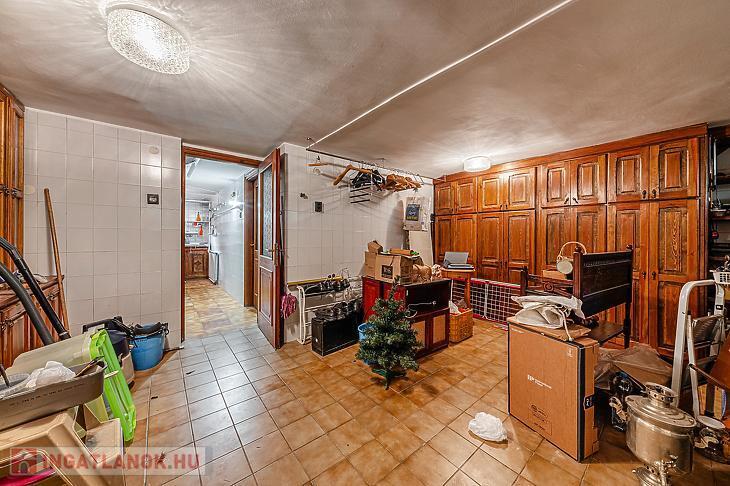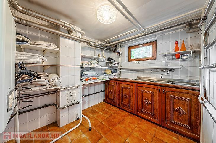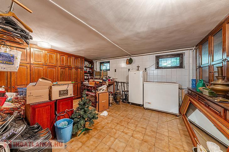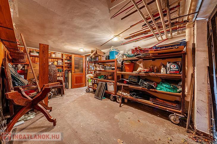 Az alagsort a házon belül lépcsőn, illetve az utcafront felől a garázskapun keresztül is megközelíthetjük. Itt 1 autóbeállót és további kettő helyiséget találunk, egy mosókonyhát, illetve egy tárolót, ahol a lakás gépészete kapott helyet. A lakás melegéről központi kazán gondoskodik.