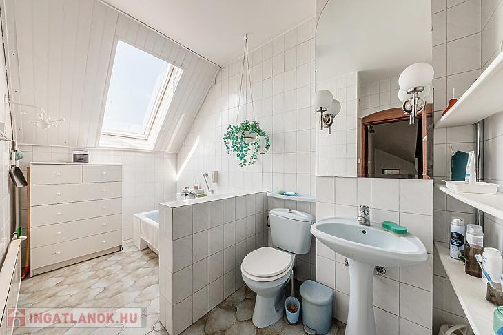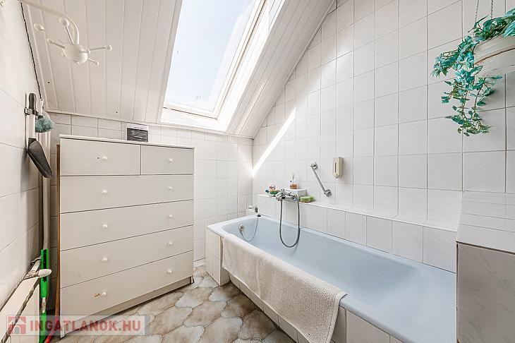 Az emeleten találunk még egy káddal felszerelt fürdőszobát, aminek köszönhetően az ingatlan duplakomfortos.