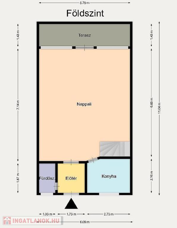 A földszinti közlekedőből közelíthetjük meg a fürdőszobát, a tágas és ablakos konyhát, illetve az impozáns nappalit, ahonnan a 11 nm-es napos teraszra, majd lépcsőn lesétálva privát kertbe léphetünk ki.